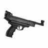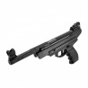 Rękojeść pistoletu jest profilowana, z anatomicznymi wycięciami na palce, co zapewnia stabilny chwyt i kontrolę podczas strzelania jedną ręką. Wiatrówka ma mechaniczne przyrządy celownicze, regulowaną szczerbinkę i muszkę.