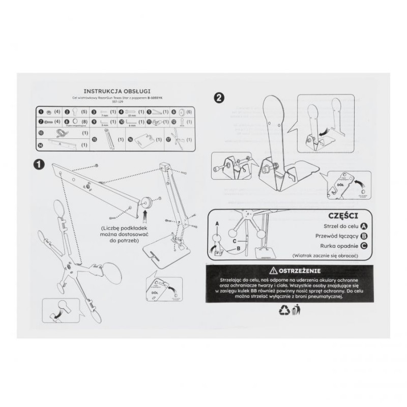 Cel wiatrówkowy RazorGun Texas Star z popperem to zaawansowany zestaw treningowy, który łączy dynamiczne strzelectwo z precyzyjnym ćwiczeniem celności. Konstrukcja opiera się na systemie obracającego się koła z tarczami oraz dodatkowym popperem, co czyni go idealnym wyborem dla osób pragnących rozwijać swoje umiejętności strzeleckie.